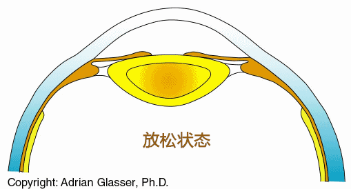 当我们的眼睛看远处的时候,睫状肌放松,晶状体变薄,看近处的时候,睫状肌收缩,晶状体变厚变凸。